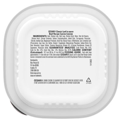 The food has a high amount of carbs. Hide Cesar is a brand of dog food made specifically for the nutritional. Beef is the clean flesh of slaughtered cattle.